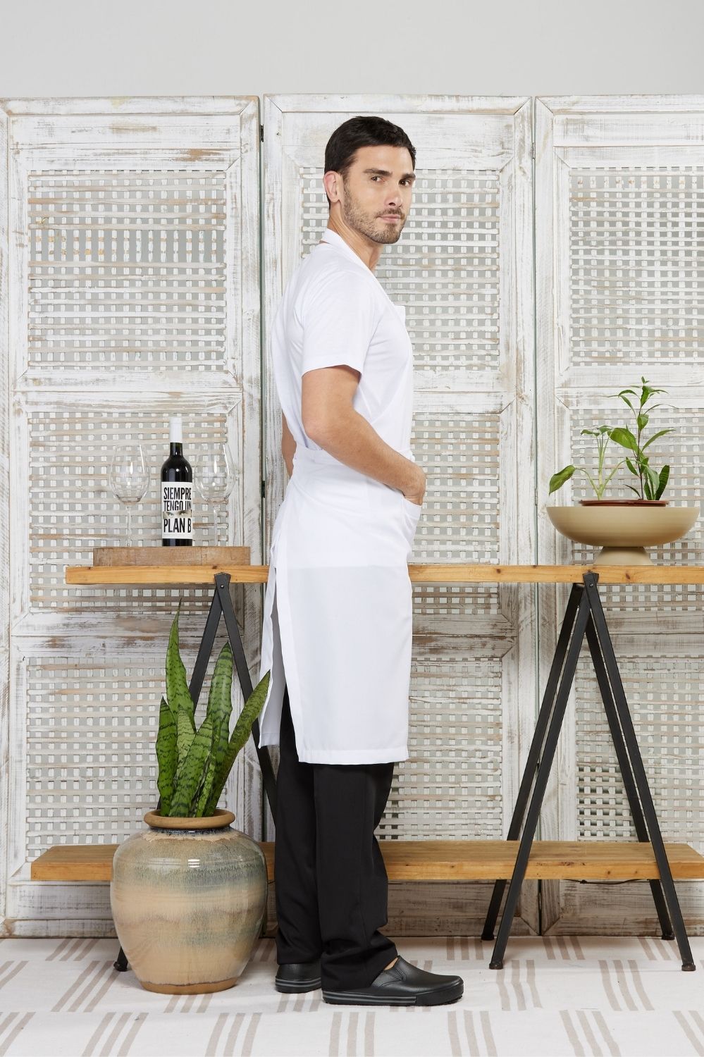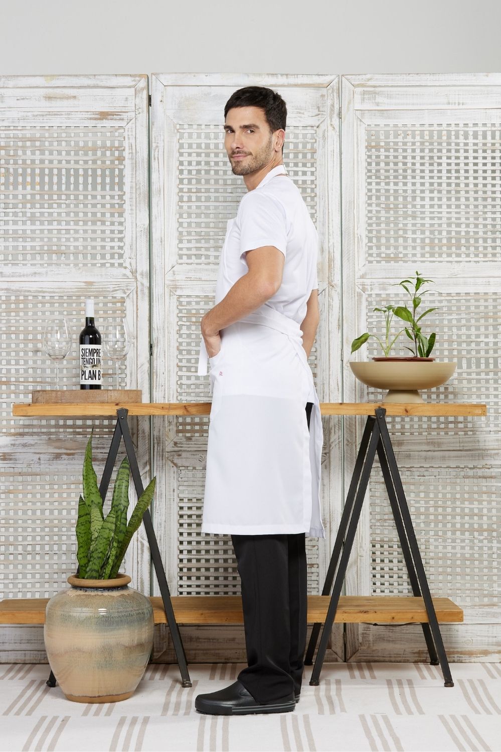 Avental Paprica oxford com alças ajustáveis, amarração nas costas e bolso frontal amplo.