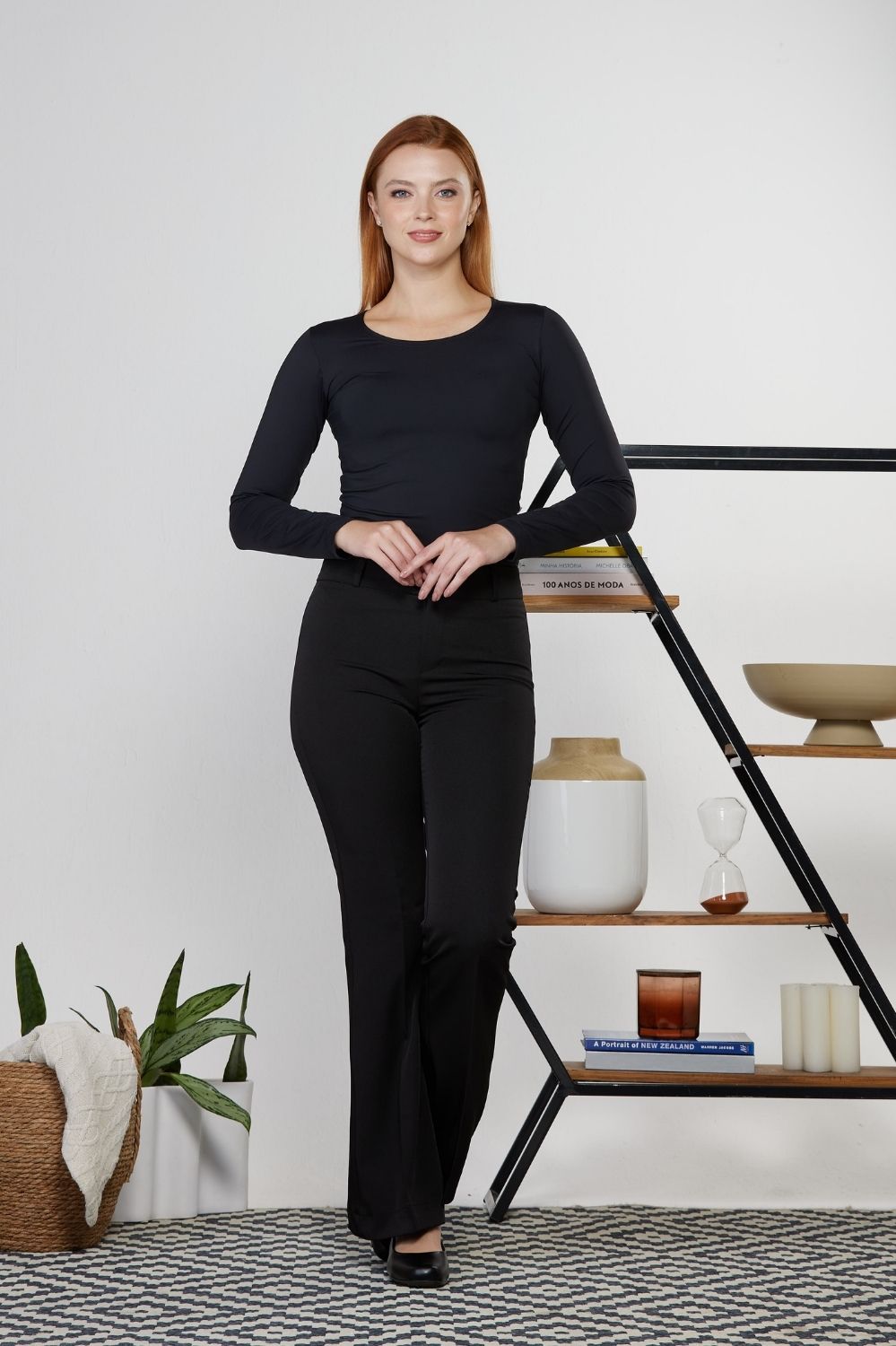 BLUSA FEM ANGELINA MICROF C/ELAST CORES ML C/ELAST NO PUNHO-PRETO