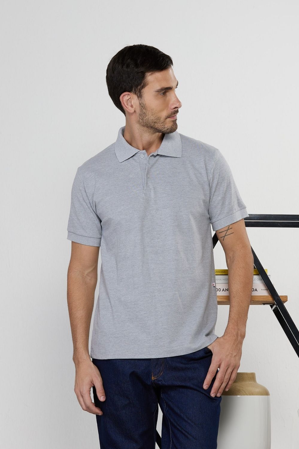 Camisa polo masculina piquet com patê de dois botões e manga curta com ribana.