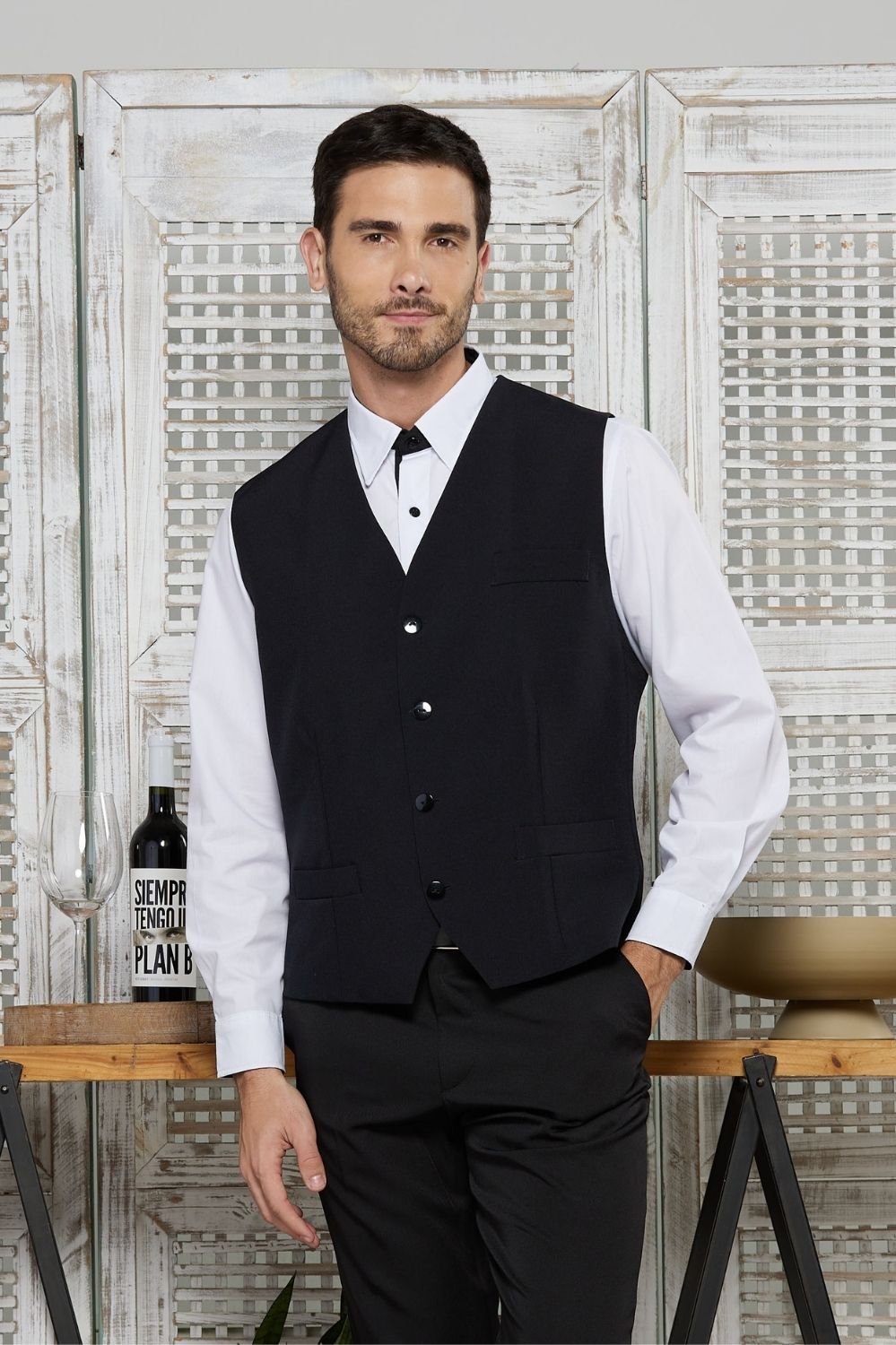CAMISA SOCIAL CASTANHA TRIC/MISTA MC BCO/LISO-BCO/PRETO LISO