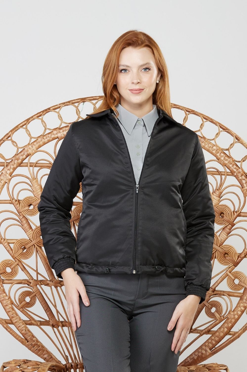 Jaqueta atitude feminina microfibra peletizada e forrada com metalassê, elástico nos punhos e regulador na barra.
