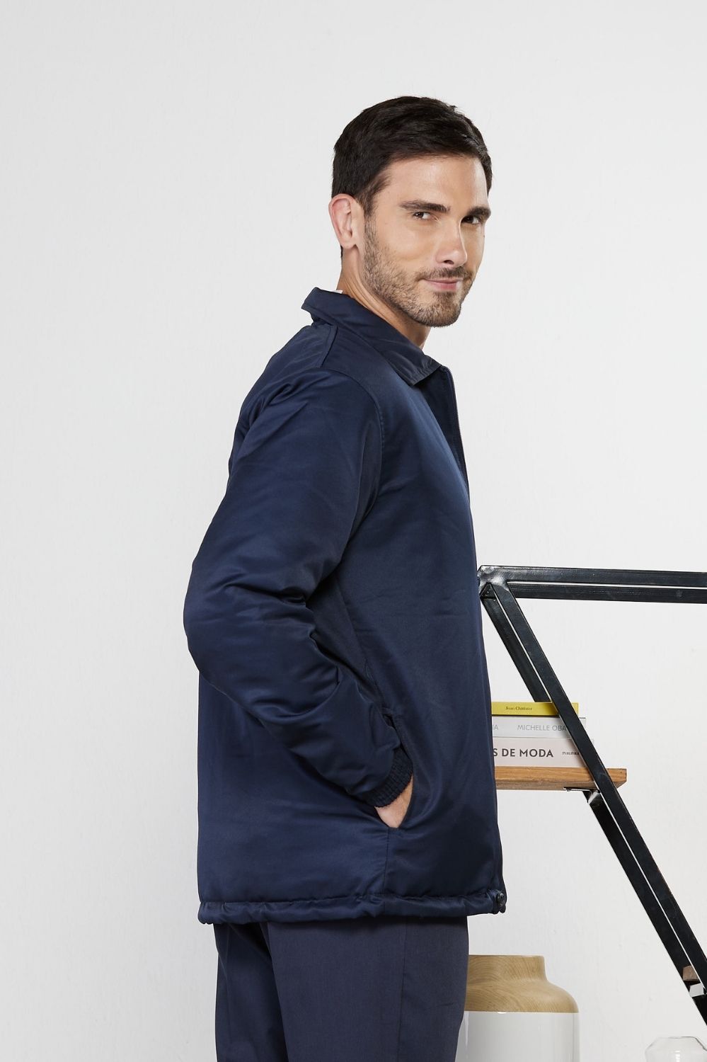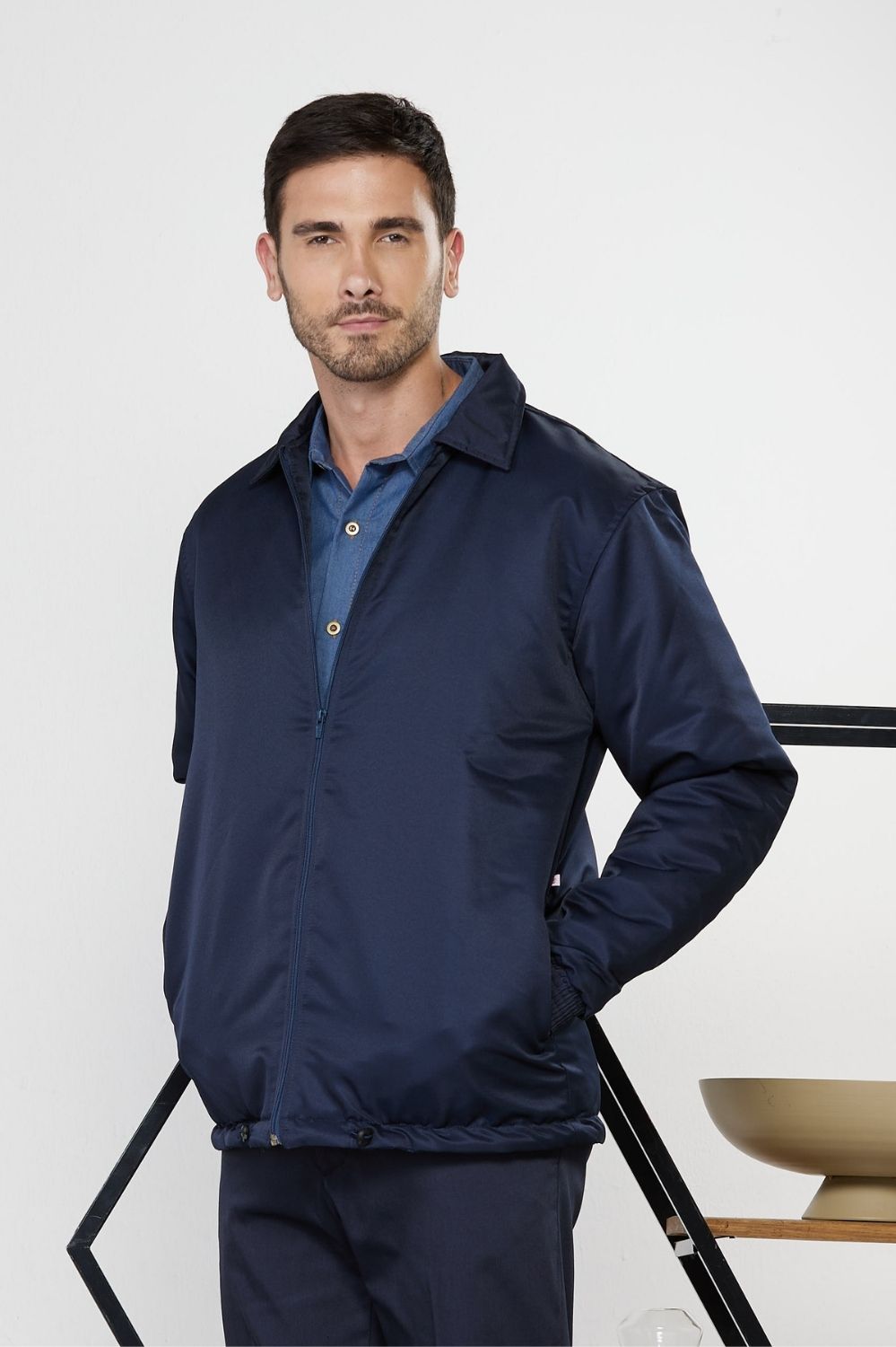 Jaqueta atitude masculina microfibra peletizada e forrada com metalassê, elástico nos punhos e regulador na barra.